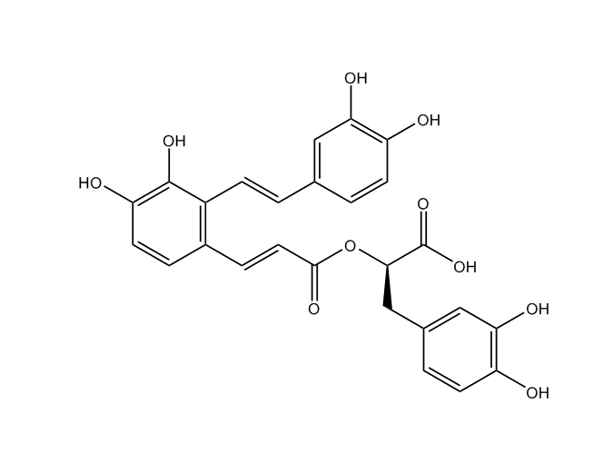 【英文别称】 (2R)-3-(3,4-dihydroxyphenyl)-2-[(E)-3-[2-[(E)-2-(3,4-dihydroxyphenyl)ethenyl]-3,4-dihydroxyphenyl]prop-2-enoyl]oxypropanoic acid