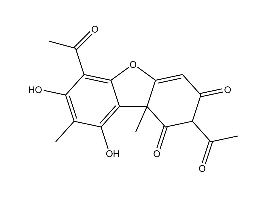 【英文别称】 2,6-diacetyl-7,9-dihydroxy-8,9b-dimethyldibenzofuran-1,3-dione