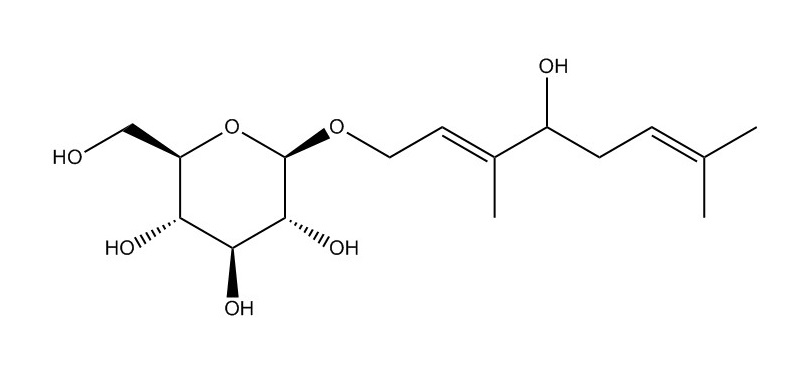 【英文别称】 (2E,4S)-4-Hydroxy-3,7-dimethyl-2,6-octadien-1-yl beta-D-glucopyranoside