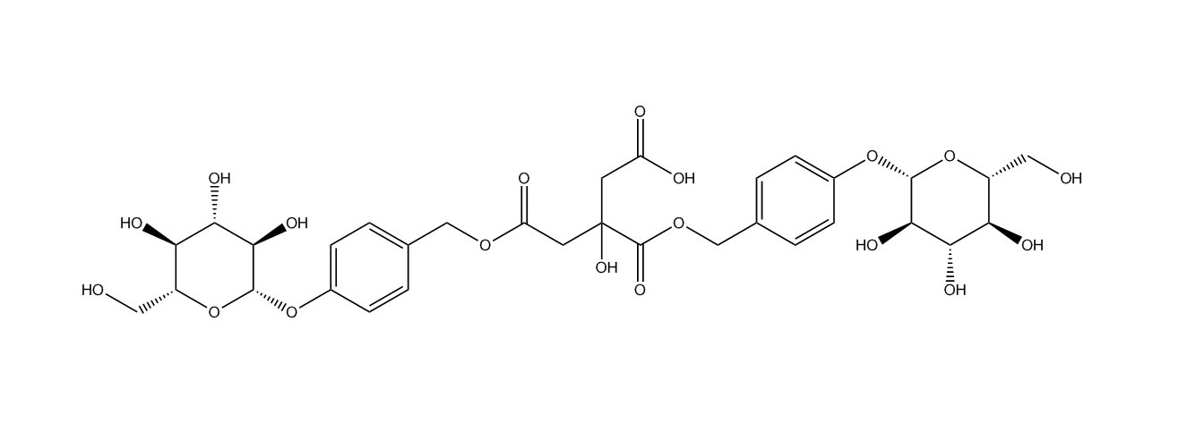 【英文别称】 [2-(Carboxymethyl)-2-hydroxy-1,4-dioxo-1,4-butanediyl]bis(oxymethylene-4,1-phenylene) bis-beta-D-glucopyranoside