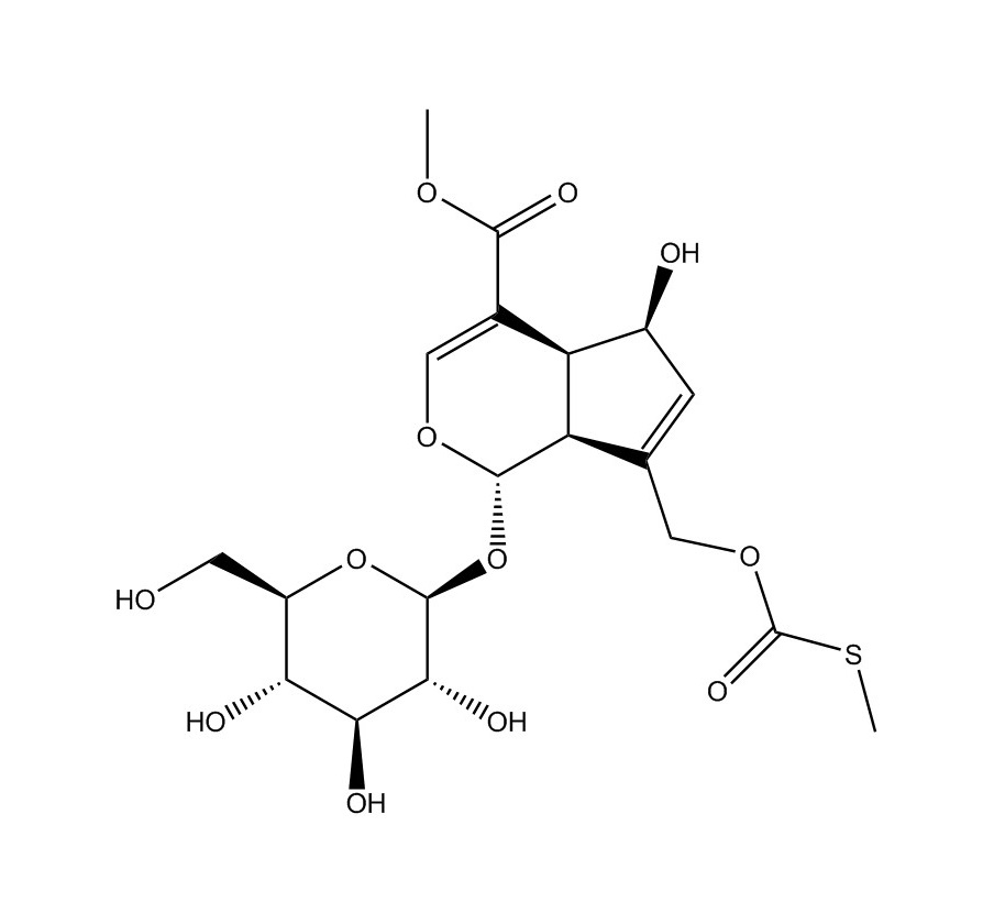 6'-O-肉桂酰基哈巴苷|1245572-24-0[1]. Chen YF,et al.Possible mechanism involved in the antinociceptive activity of dimer of paederosidic acid and paederosidic acid methyl ester in mice.CNS Neurosci Ther. 2014 Feb;20(2):188-90.