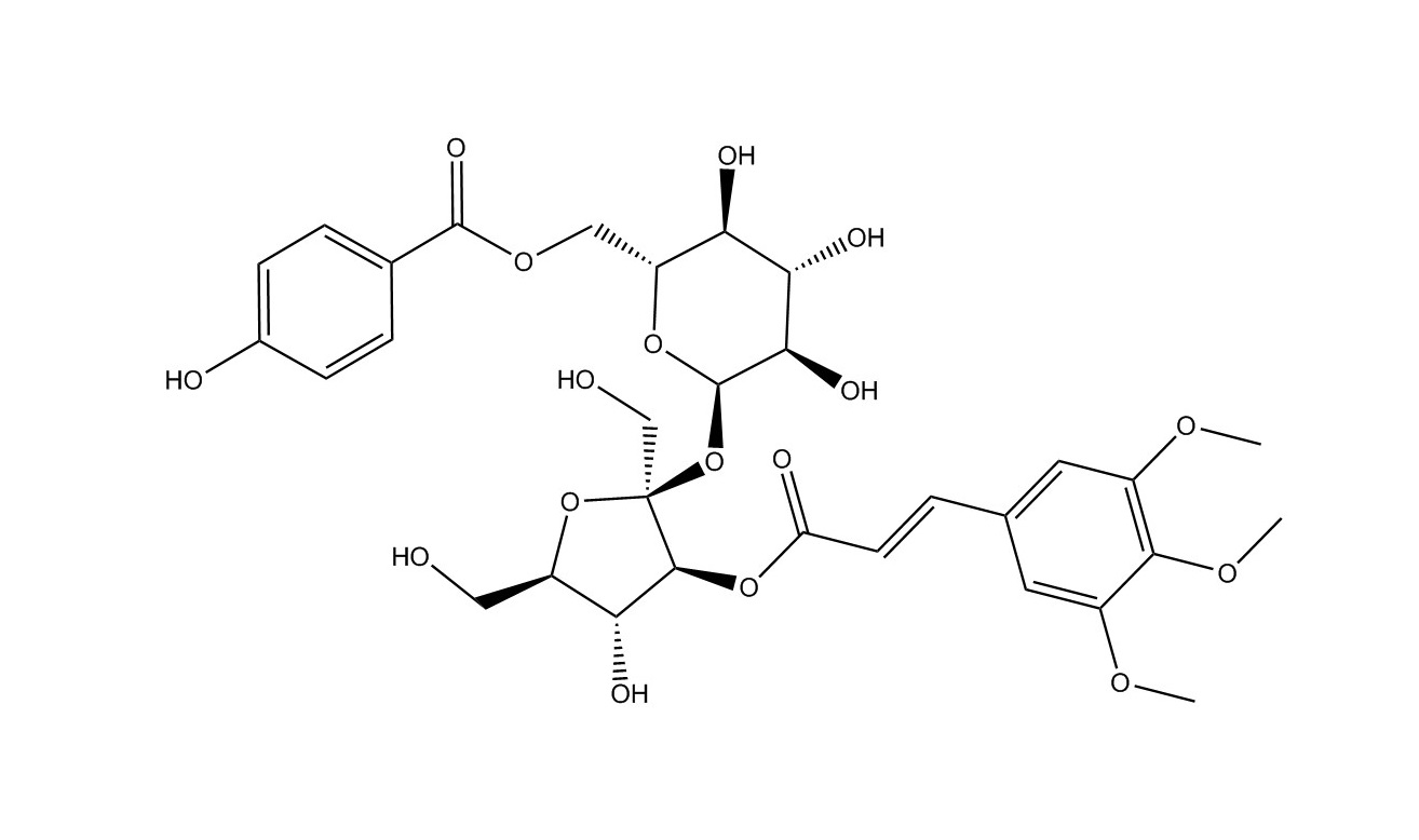 【英文别称】 α-D-Glucopyranoside, 3-O-[(2E)-1-oxo-3-(3,4,5-trimethoxyphenyl)-2-propen-1-yl]-β-D-fructofuranosyl, 6-(4-hydroxybenzoate)