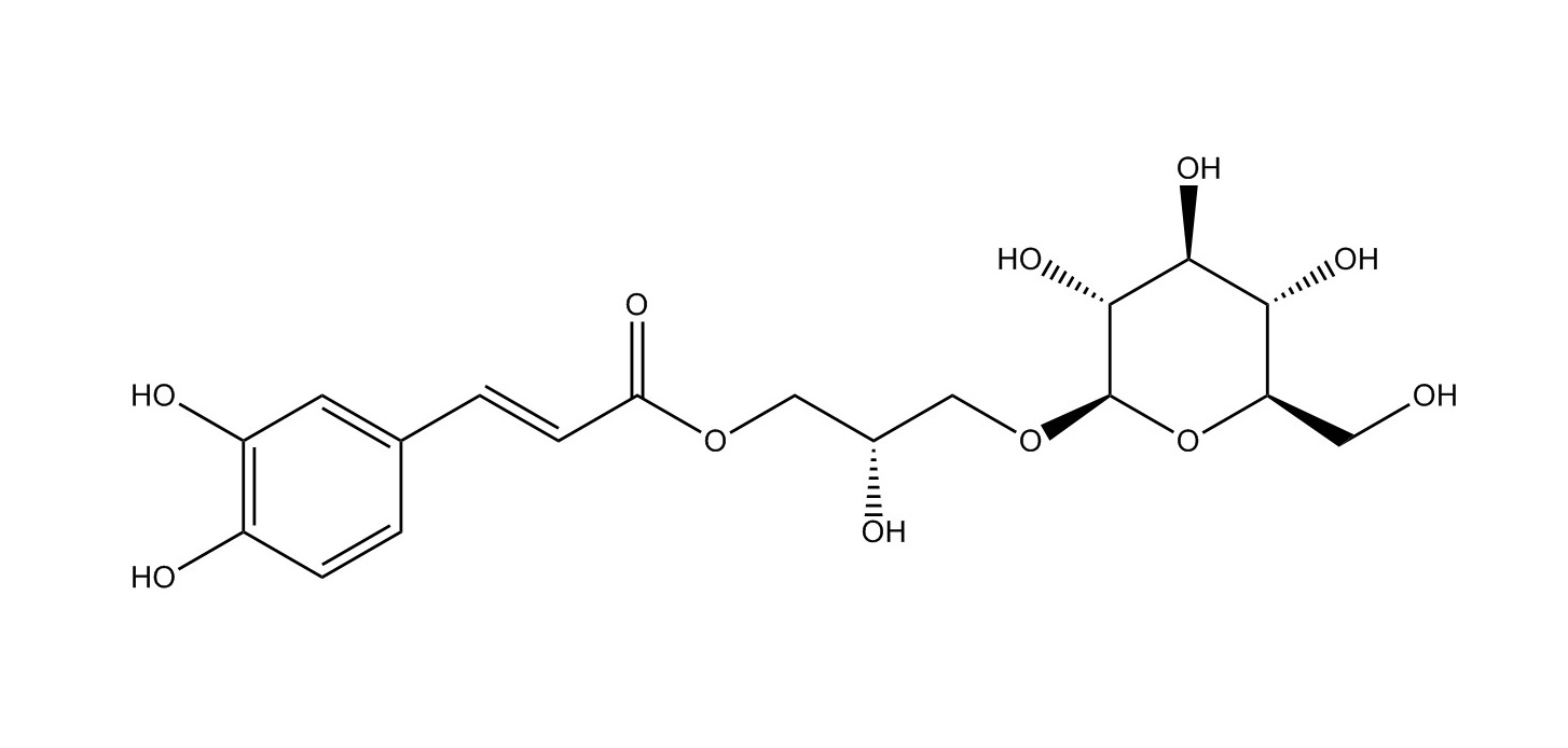 【英文别称】 [(S)-3-[[(2E)-3-(3,4-Dihydroxyphenyl)-1-oxo-2-propenyl]oxy]-2-hydroxypropyl]β-D-glucopyranoside