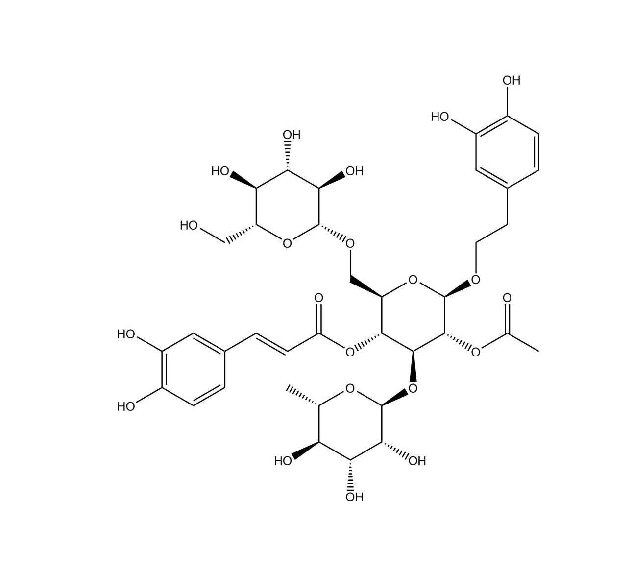 【英文别称】 2-(3,4-Dihydroxyphenyl)ethyl 2-O-(6-deoxy-α-L-mannopyranosyl)-3-O -[(2E)-3-(3,4-dihydroxyphenyl)-2-propenoyl]-β-D-allopyranoside