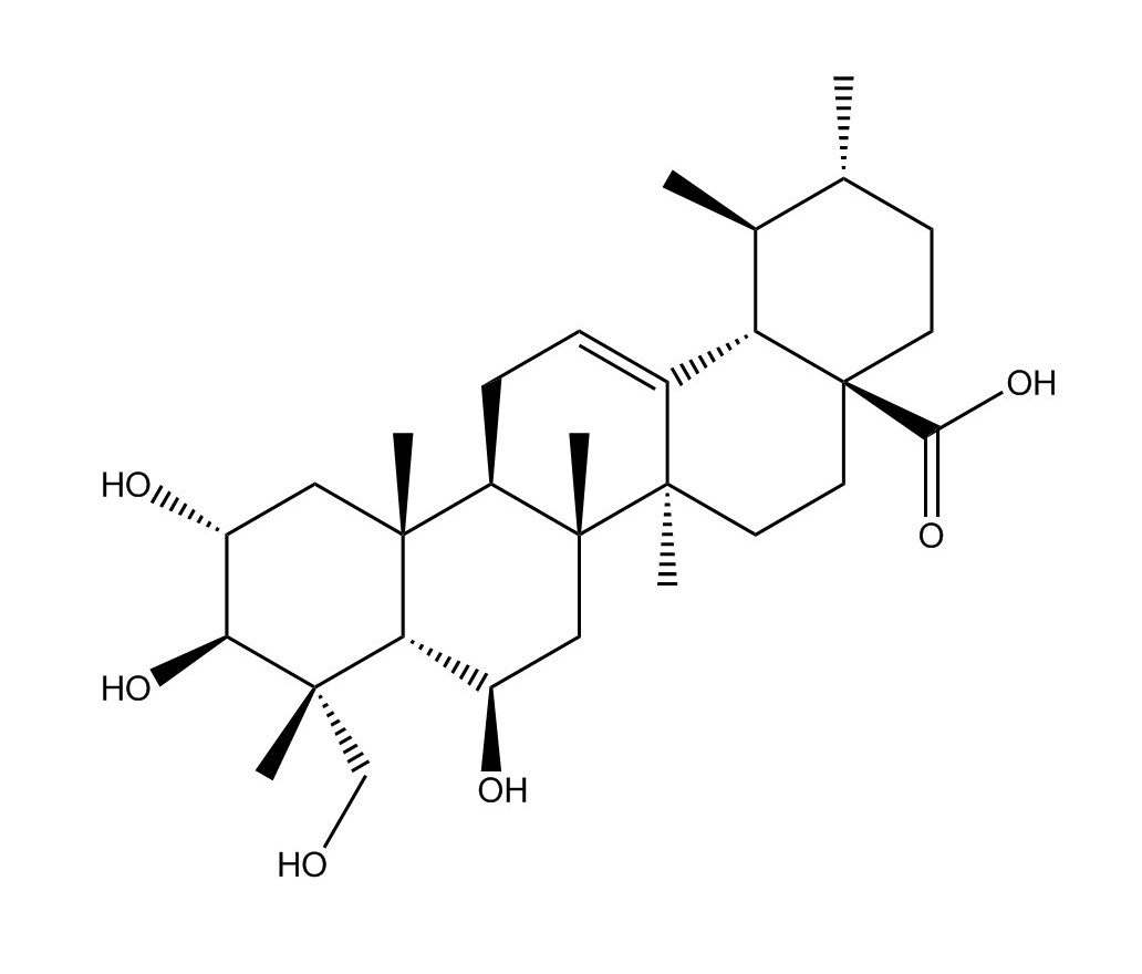 【英文别称】 (2alpha,3beta,4alpha,6beta)-2,3,6,23-tetrahydroxy-urs-12-en-28-oic acid