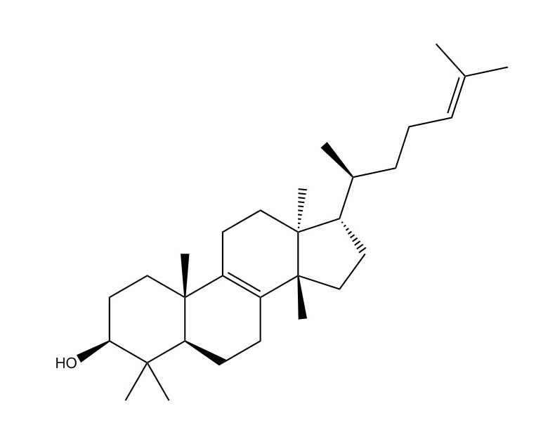 【英文别称】 (13α,14β,17α,20S)-5α-Lanosta-8,24-dien-3β-ol;5α-Tirucallane-8,24-dien-3β-ol